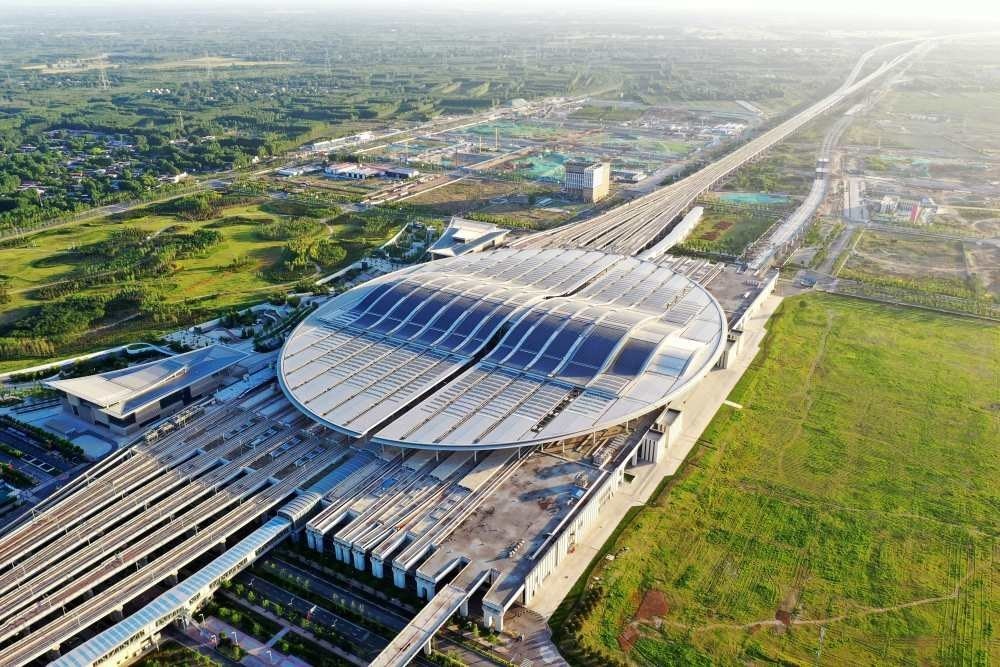 這是雄安站(6月2日攝,無(wú)人機(jī)照片)。雄安站位于雄安新區(qū)昝崗片區(qū),是雄安新區(qū)開(kāi)工建設(shè)的第一個(gè)重大基礎(chǔ)設(shè)施項(xiàng)目,具有標(biāo)志性意義。新華社記者 朱旭東 攝