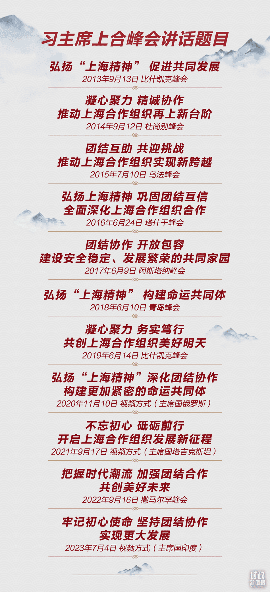 每次出席上合峰會,習(xí)近平主席都發(fā)表重要講話,為上合組織發(fā)展壯大擘畫藍圖。