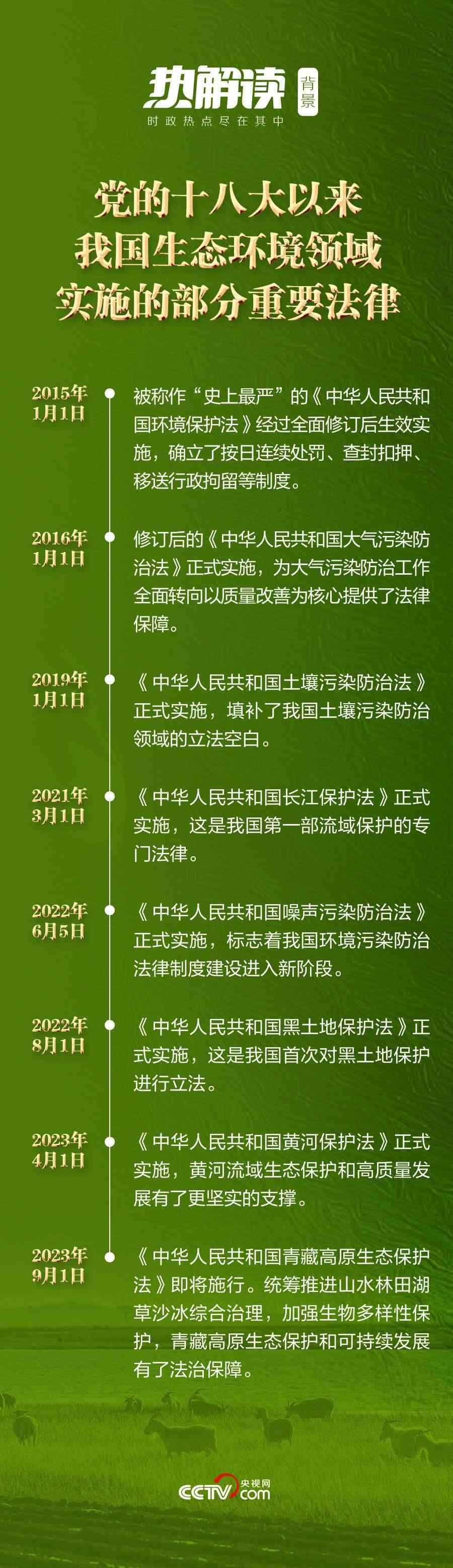 黨的十八大以來(lái),越織越密的生態(tài)文明制度體系成為生態(tài)文明建設(shè)的有力保障。將“生態(tài)文明建設(shè)”寫入憲法,制定和修改長(zhǎng)江保護(hù)法、土地管理法、森林法等,我國(guó)生態(tài)環(huán)境立法實(shí)現(xiàn)了從量到質(zhì)的全面提升。