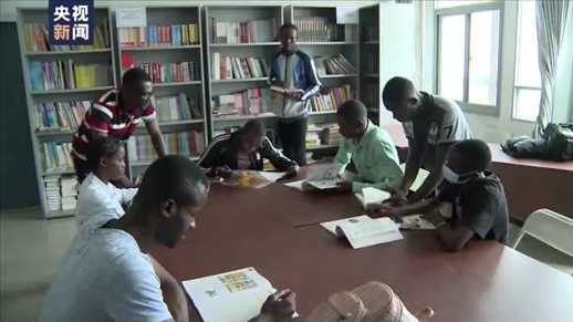 △漢語愛好者在恩古瓦比大學圖書館中國館里學習。