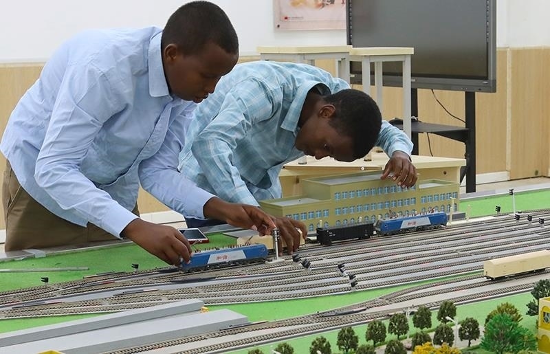 △2022年9月19日,在位于吉布提首都吉布提市的吉布提工商學校,學生在魯班工坊鐵道運營沙盤教學區(qū)學習。