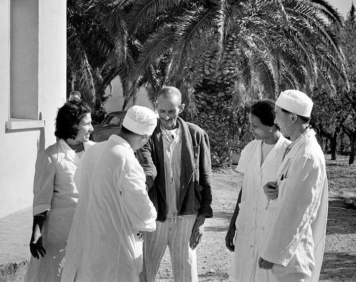 △1966年12月,一名阿爾及利亞老人向中國援非醫(yī)療隊醫(yī)生表達自己病況好轉的愉快心情。