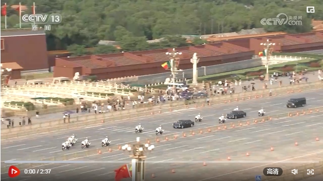 軍樂(lè)團(tuán)奏貝中兩國(guó)國(guó)歌,鳴禮炮21響。