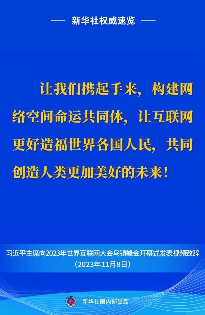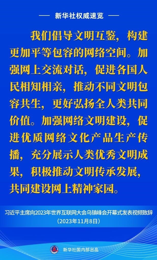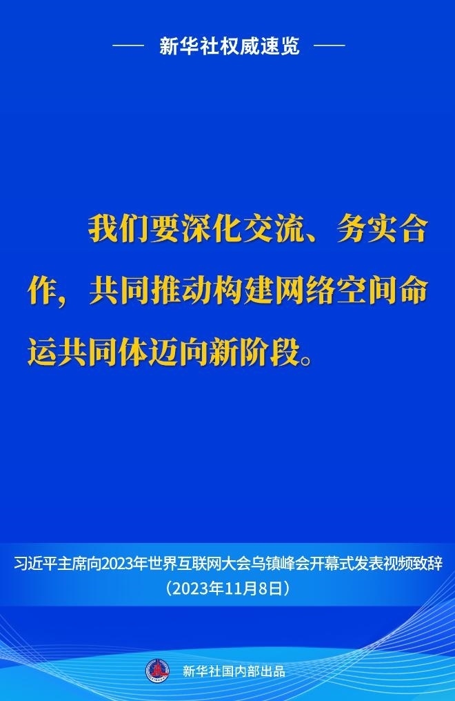 11月8日上午,國(guó)家主席習(xí)近平向2023年世界互聯(lián)網(wǎng)大會(huì)烏鎮(zhèn)峰會(huì)開幕式發(fā)表視頻致辭。一起來看金句。