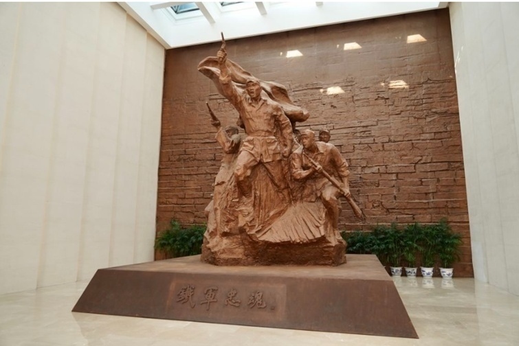 新四軍紀(jì)念館內(nèi)的鐵軍忠魂雕塑。(新華社記者 李博 攝)