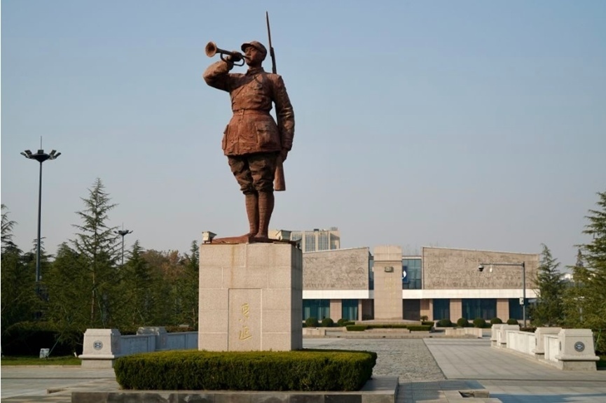 新四軍紀(jì)念館廣場(chǎng)上的新四軍雕像。(新華社記者 李博 攝)