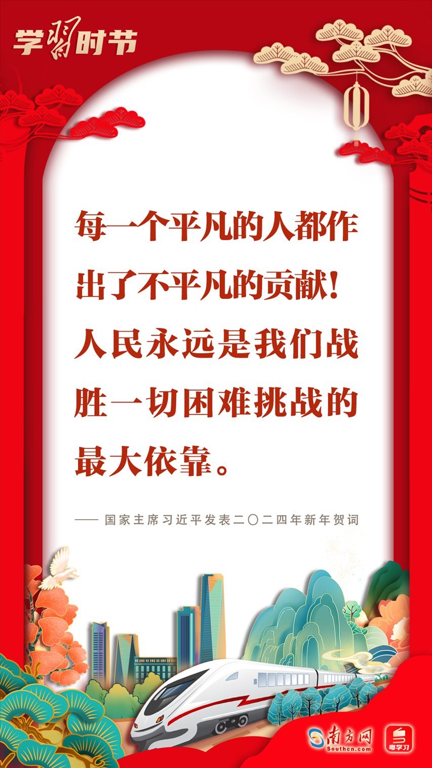 2023年12月31日晚,國(guó)家主席習(xí)近平在北京發(fā)表二〇二四年新年賀詞。賀詞飽含對(duì)廣大人民群眾的深情,彰顯對(duì)中國(guó)發(fā)展的堅(jiān)定信心?;厥走^往,展望未來;砥礪前行,征程再起。讓我們一起在習(xí)近平主席的新年賀詞中感受直抵心靈的溫暖、催人奮進(jìn)的力量!