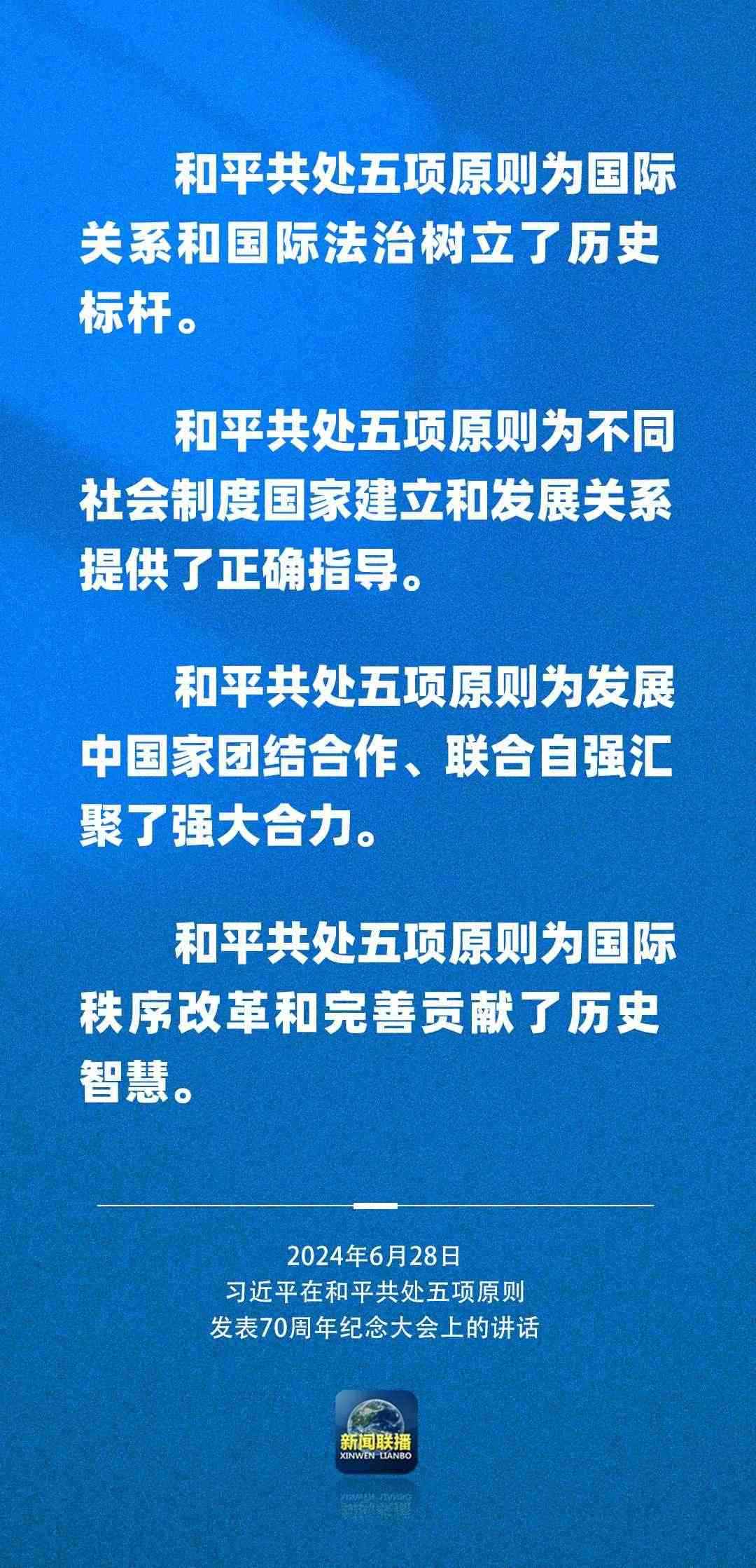 6月28日上午,國(guó)家主席習(xí)近平在北京人民大會(huì)堂出席和平共處五項(xiàng)原則發(fā)表70周年紀(jì)念大會(huì)并發(fā)表重要講話。