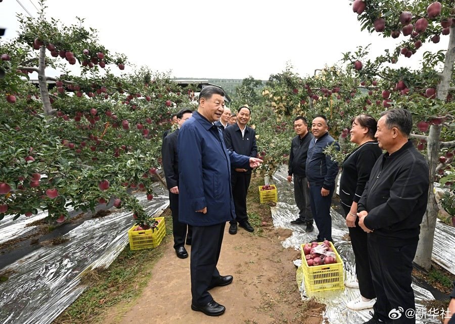 11日上午,習(xí)近平總書記來到甘肅天水市麥積區(qū)南山花牛蘋果基地考察,走進(jìn)果林向現(xiàn)場的果農(nóng)、農(nóng)技人員等詳細(xì)詢問花牛蘋果品質(zhì)特色、種植技術(shù)、市場銷路等,并同鄉(xiāng)親們親切交流。習(xí)近平說,鄉(xiāng)村振興要靠產(chǎn)業(yè),各地要各展其長,走適合自己的振興道路。習(xí)近平勉勵(lì)鄉(xiāng)親們再接再厲,把蘋果產(chǎn)業(yè)做得更大更強(qiáng),過上更加幸福的生活。(文字記者:張曉松、朱基釵;攝影記者:鞠鵬、謝環(huán)馳)