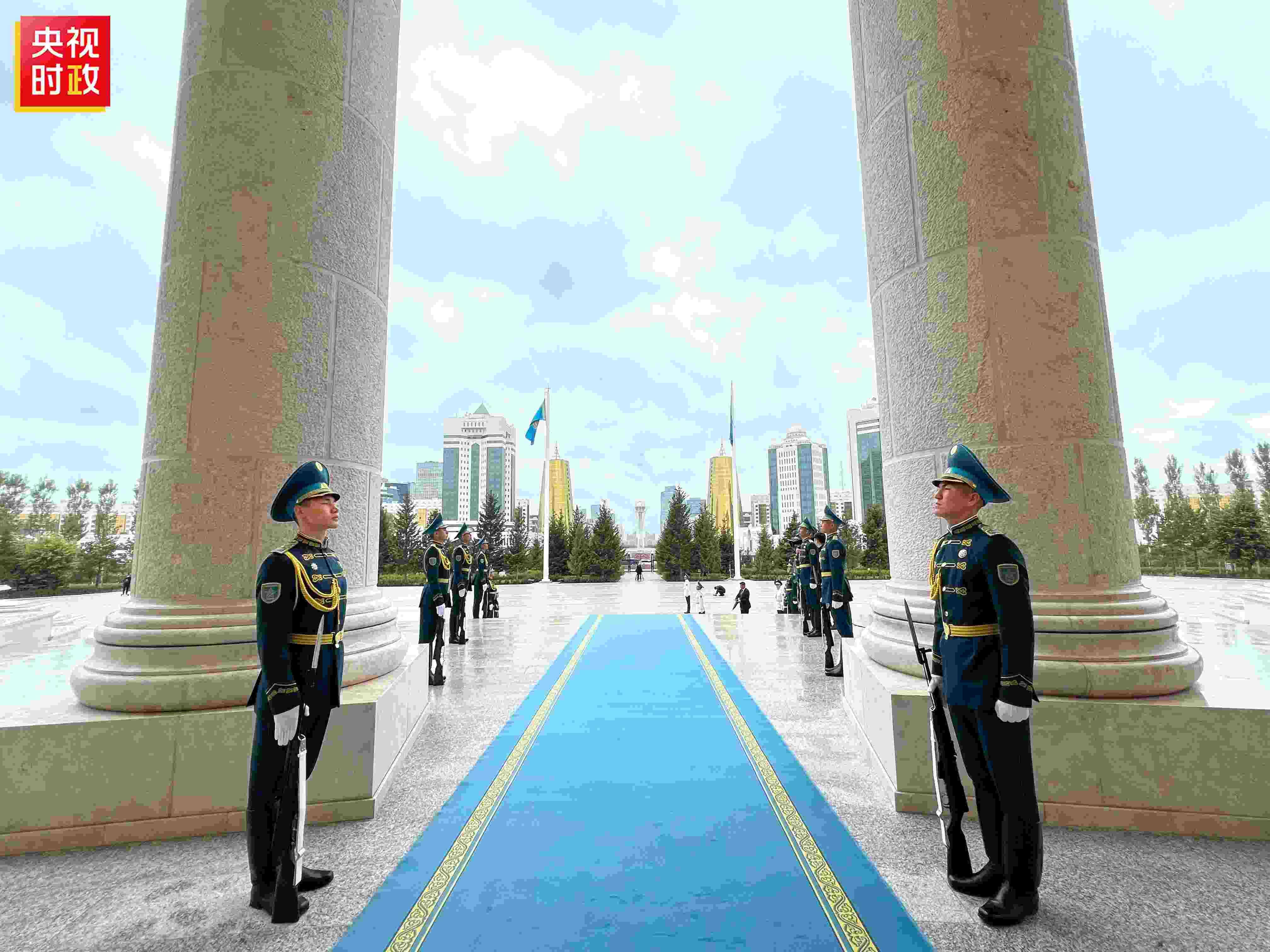 當(dāng)?shù)貢r(shí)間7月3日上午,國家主席習(xí)近平乘專車抵達(dá)總統(tǒng)府,托卡耶夫總統(tǒng)在下車處熱情迎接。