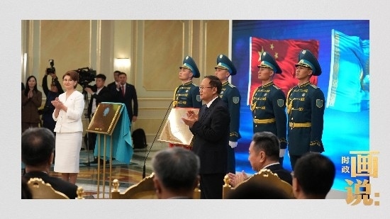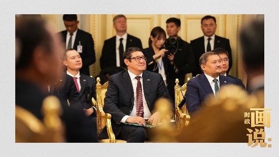 當(dāng)?shù)貢r間3日,國家主席習(xí)近平在阿斯塔納出席哈薩克斯坦總統(tǒng)托卡耶夫在總統(tǒng)府舉行的歡迎儀式。習(xí)近平主席乘車抵達時,托卡耶夫總統(tǒng)熱情迎接,以最高禮儀歡迎習(xí)近平主席對哈薩克斯坦進行國事訪問。