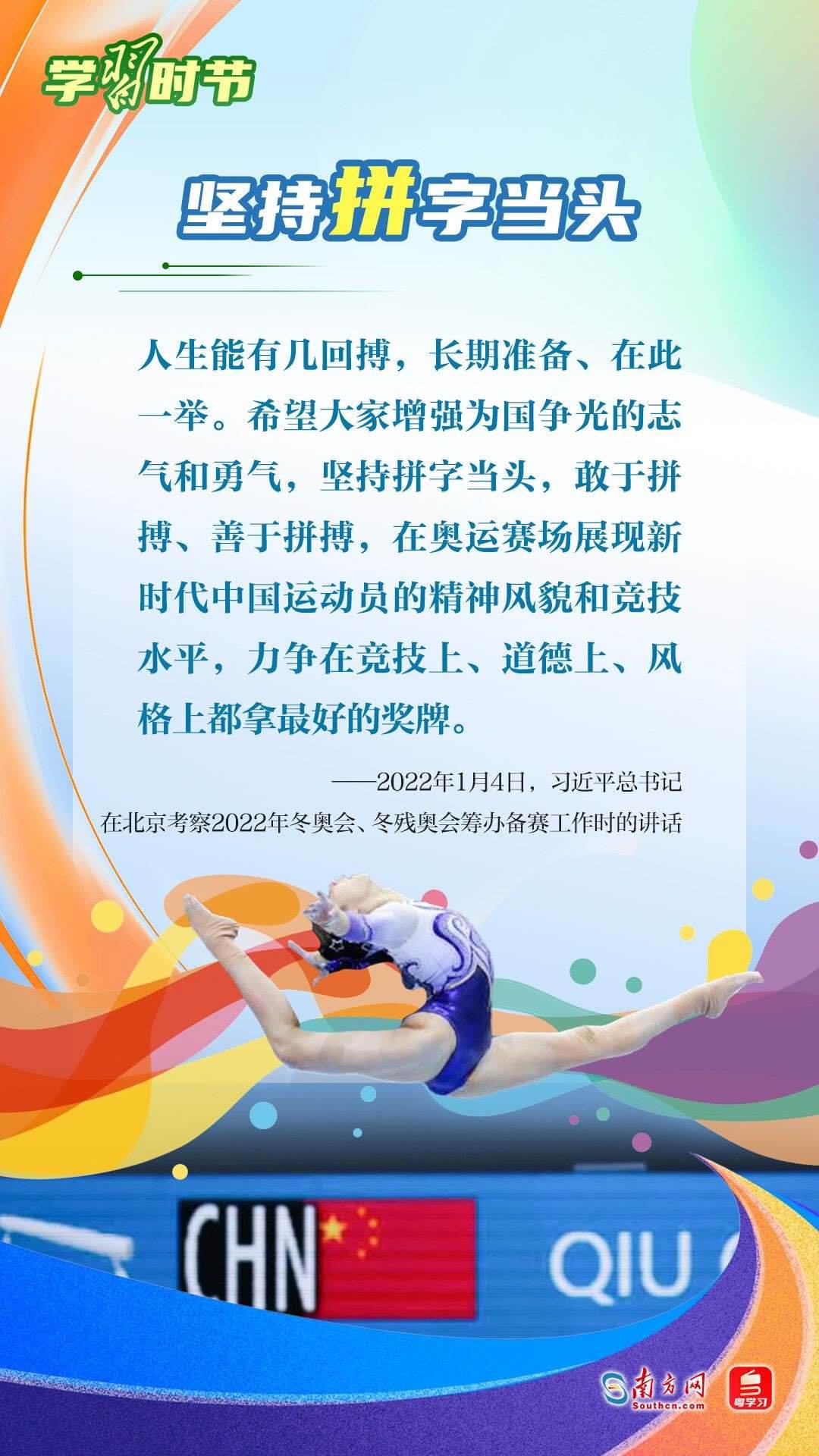 “我們不以勝負(fù)論英雄,同時(shí)英雄就要敢于爭(zhēng)先、敢于爭(zhēng)第一。”習(xí)近平總書記曾在不同場(chǎng)合論述奧林匹克精神,深刻闡明了勝與負(fù)、成與敗的辯證關(guān)系,對(duì)奧林匹克“更快、更高、更強(qiáng)——更團(tuán)結(jié)”的格言進(jìn)行詮釋。讓我們一同學(xué)習(xí)習(xí)近平總書記對(duì)奧林匹克精神的重要論述,心懷夢(mèng)想、奮勇拼搏,攜手走向美好明天。