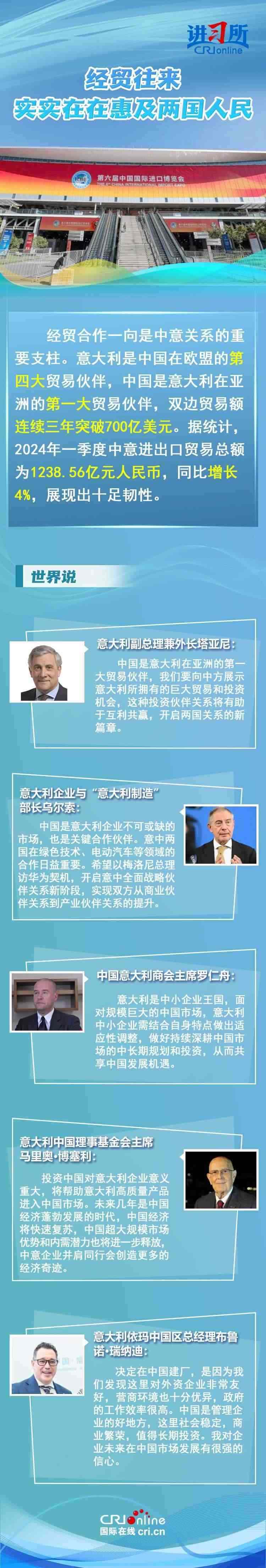 梅洛尼表示,中國對意大利而言是一個極為重要的經(jīng)貿(mào)和文化合作伙伴。意大利各界人士認為,中意并肩同行會創(chuàng)造更多的經(jīng)濟奇跡,同時兩國非常有必要開展文明對話,期待未來兩國展開更多領域合作,開啟全面戰(zhàn)略伙伴關系新階段。