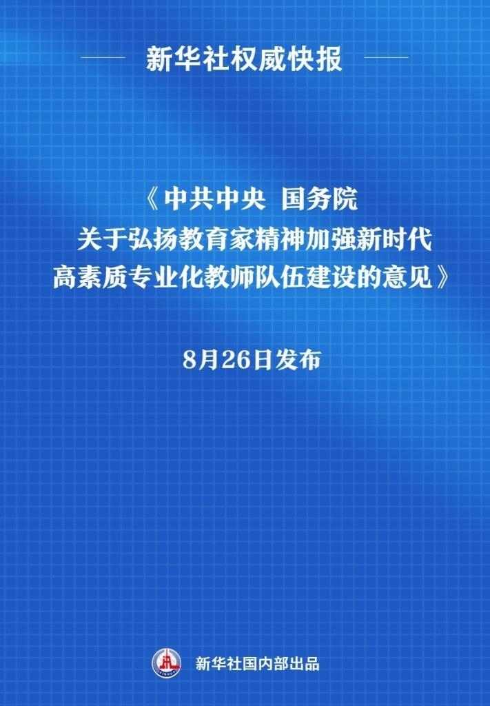 《中共中央 國務(wù)院關(guān)于弘揚教育家精神加強新時代高素質(zhì)專業(yè)化教師隊伍建設(shè)的意見》8月26日發(fā)布。