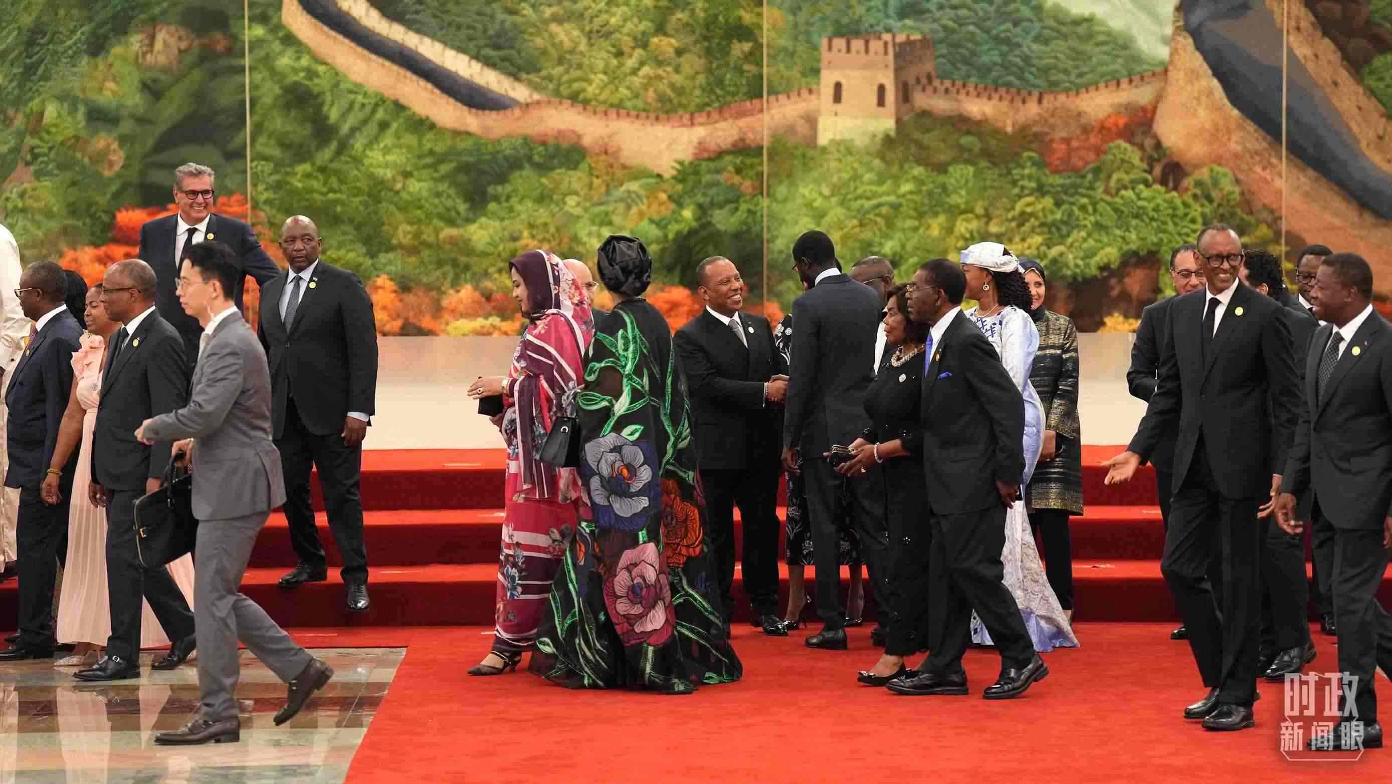 △非洲國家領(lǐng)導(dǎo)人步入人民大會堂。(總臺央視記者趙怡彬拍攝)