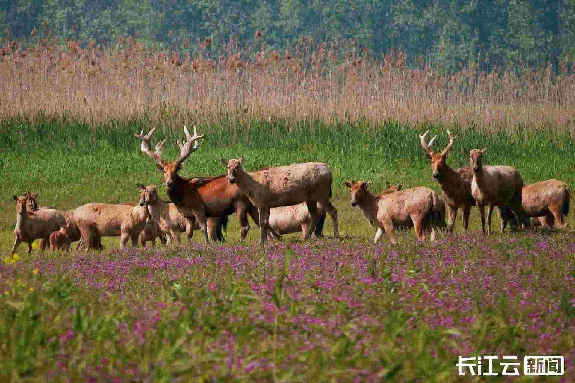 呦呦鹿鳴,食野之蘋(píng)?!对?shī)經(jīng)》上的這一幕美好,在湖北省荊州市石首麋鹿國(guó)家級(jí)自然保護(hù)區(qū)重現(xiàn)了!