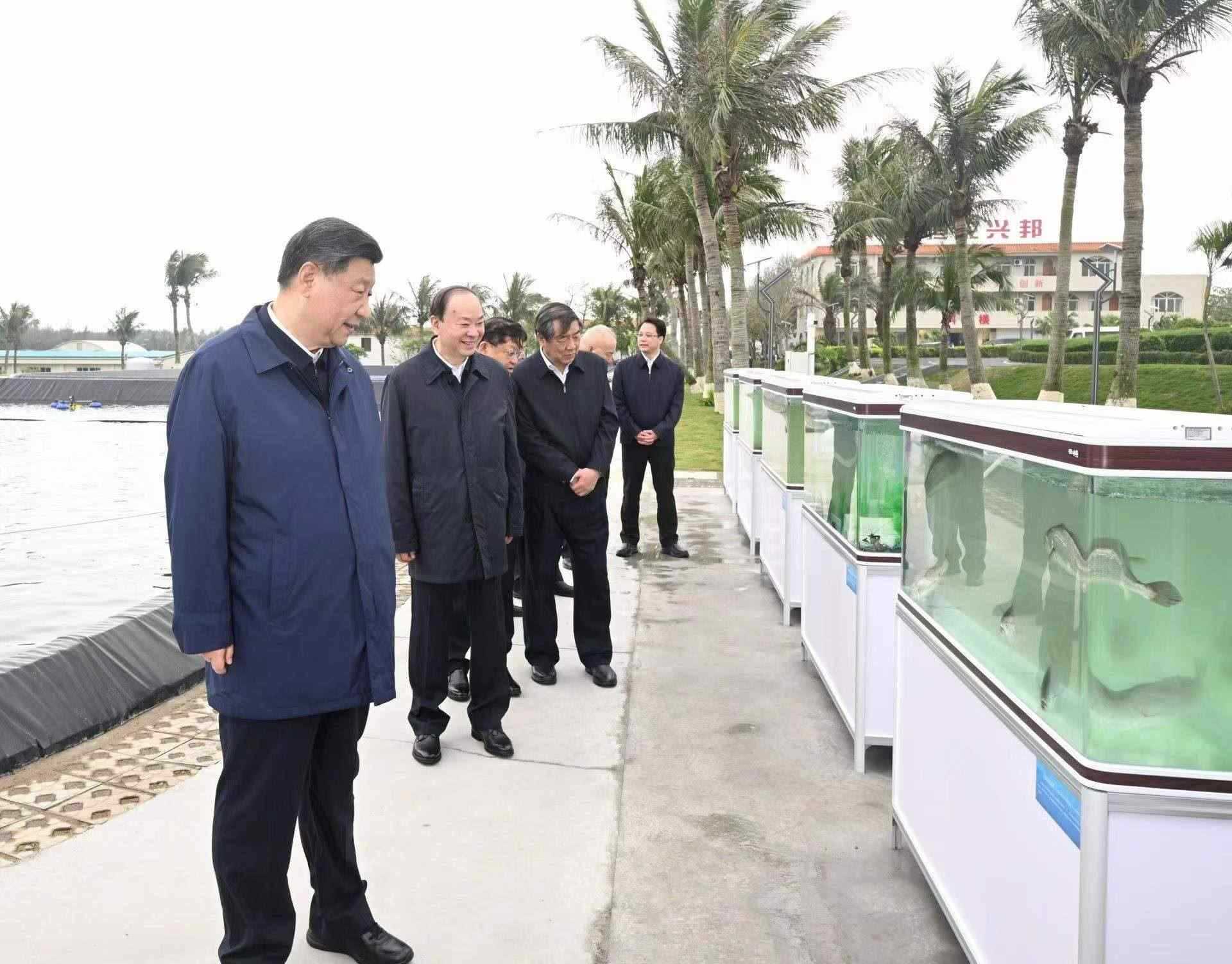 △2023年4月10日,習(xí)近平總書(shū)記在廣東省湛江市國(guó)家863計(jì)劃項(xiàng)目海水養(yǎng)殖種子工程南方基地考察調(diào)研。