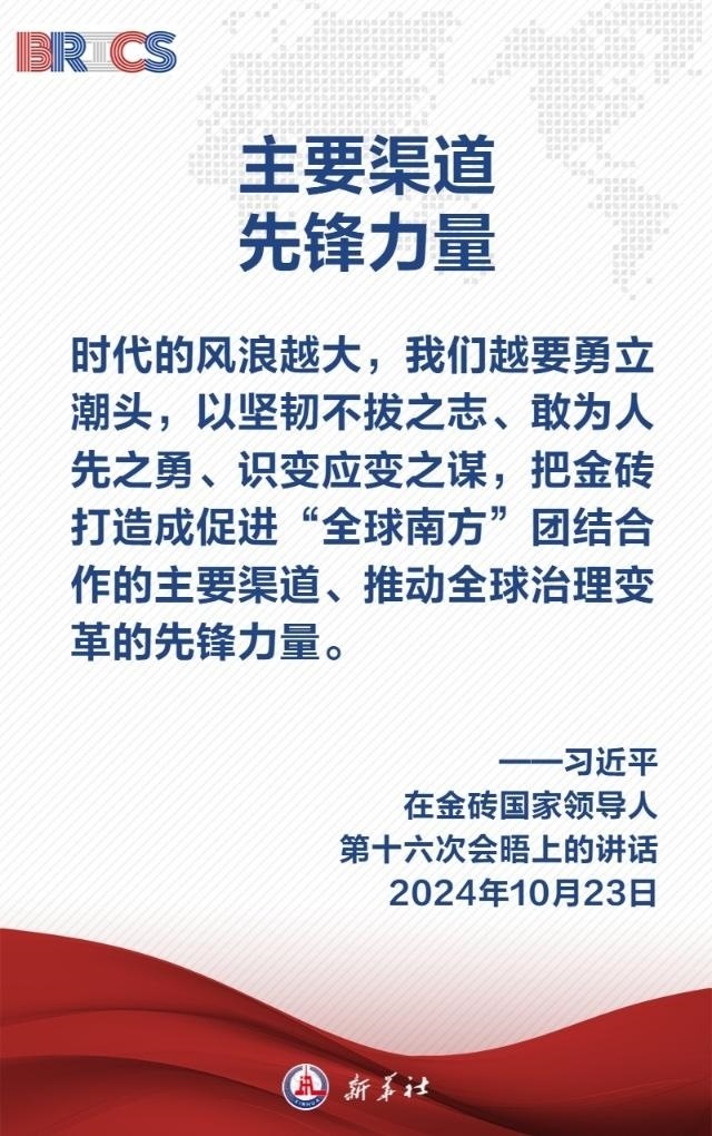 當(dāng)?shù)貢r(shí)間10月23日,國(guó)家主席習(xí)近平在俄羅斯喀山出席金磚國(guó)家領(lǐng)導(dǎo)人第十六次會(huì)晤并發(fā)表題為《登高望遠(yuǎn),穿云破霧 推動(dòng)“大金磚合作”高質(zhì)量發(fā)展》的重要講話,為推動(dòng)“大金磚合作”行穩(wěn)致遠(yuǎn)指明五個(gè)方向——