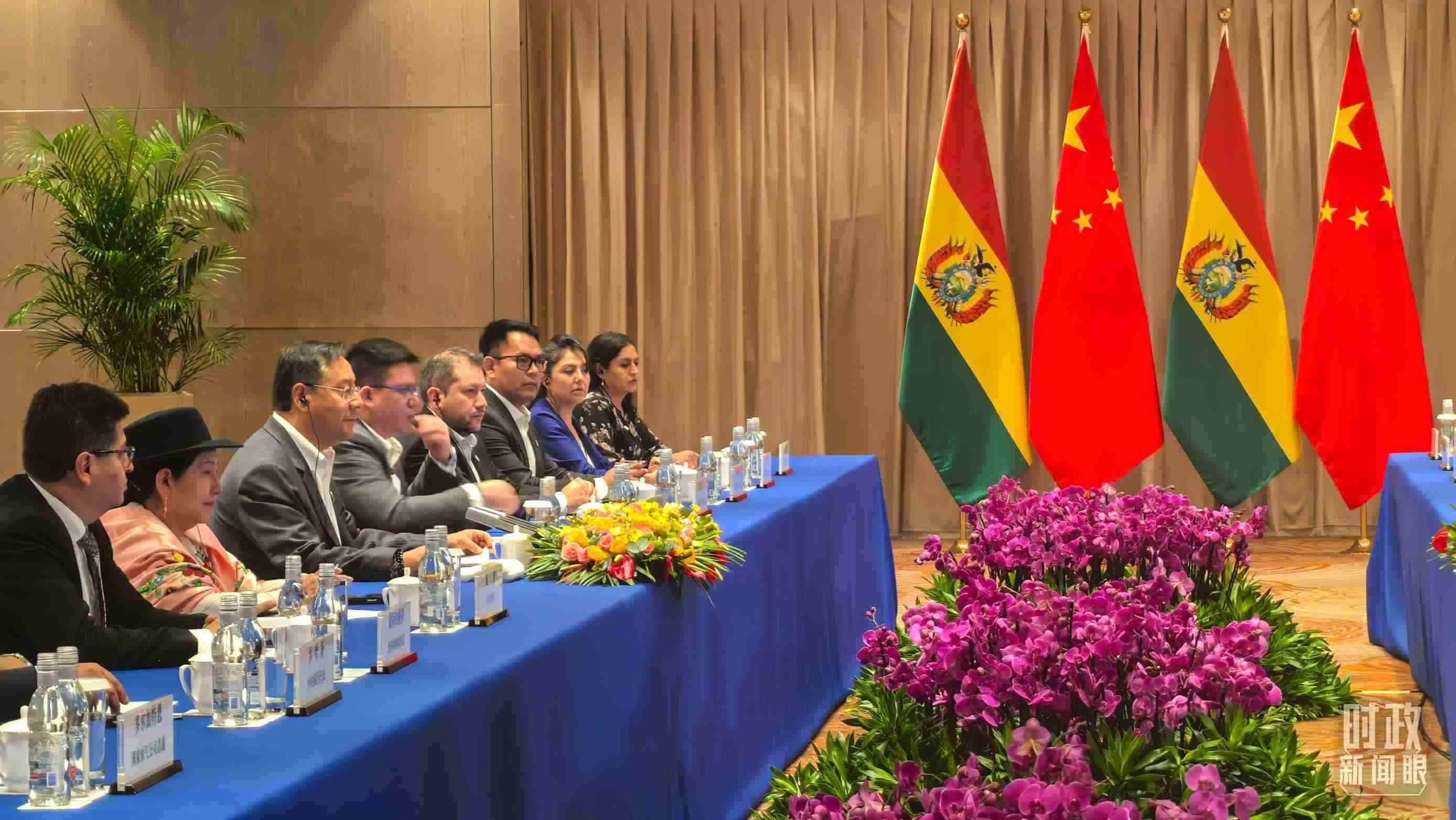 △習(xí)主席會(huì)見玻利維亞總統(tǒng)阿爾塞現(xiàn)場(chǎng)。(總臺(tái)央廣記者潘毅拍攝)