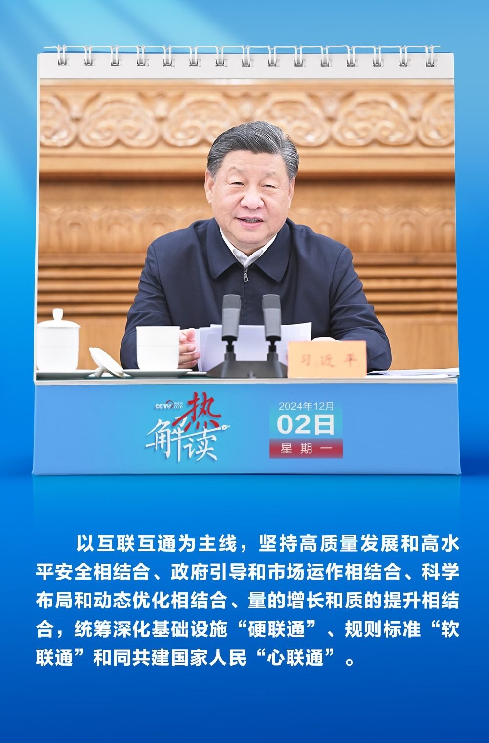 “統(tǒng)籌深化基礎設施‘硬聯(lián)通’、規(guī)則標準‘軟聯(lián)通’和同共建國家人民‘心聯(lián)通’”,“完善‘硬聯(lián)通’、‘軟聯(lián)通’、‘心聯(lián)通’協(xié)調推進機制”。12月2日,習近平總書記在第四次“一帶一路”建設工作座談會上對深化三個“聯(lián)通”再作部署。