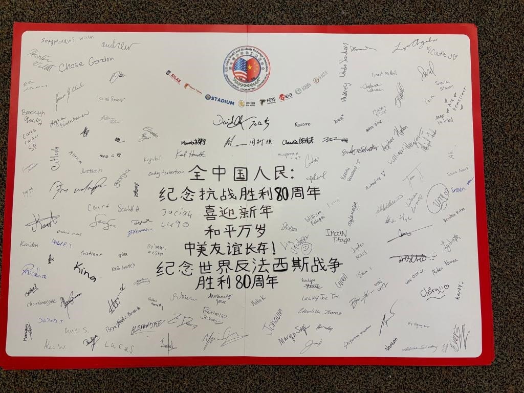 2025年是中國(guó)人民抗日戰(zhàn)爭(zhēng)和世界反法西斯戰(zhàn)爭(zhēng)勝利80周年。美國(guó)華盛頓州中學(xué)師生代表在賀卡中致敬歷史:“紀(jì)念抗戰(zhàn)勝利80周年,紀(jì)念世界反法西斯戰(zhàn)爭(zhēng)勝利80周年?!绷?xí)近平主席夫婦在回贈(zèng)賀卡中說,第二次世界大戰(zhàn)期間,中美共同為和平和正義而戰(zhàn),兩國(guó)人民的友誼經(jīng)受了血與火的考驗(yàn),歷久彌新。
