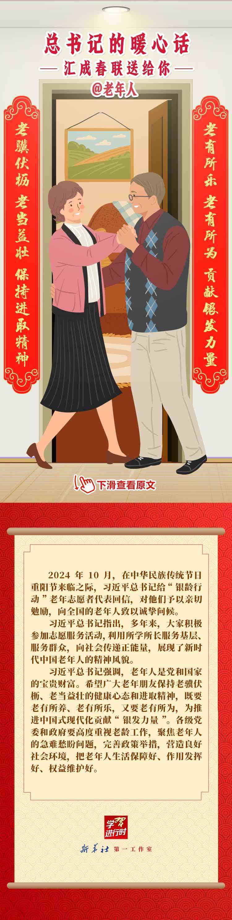 【學(xué)習(xí)進(jìn)行時(shí)】過春節(jié),貼春聯(lián),寄托人們對(duì)新年的美好愿望。過去一年,習(xí)近平總書記在不同場合點(diǎn)贊各行各業(yè)奮斗者,說了許多暖心話。新春之際,我們匯編成聯(lián),向新征程上的每一位“主角”致敬,送上新春的祝福。