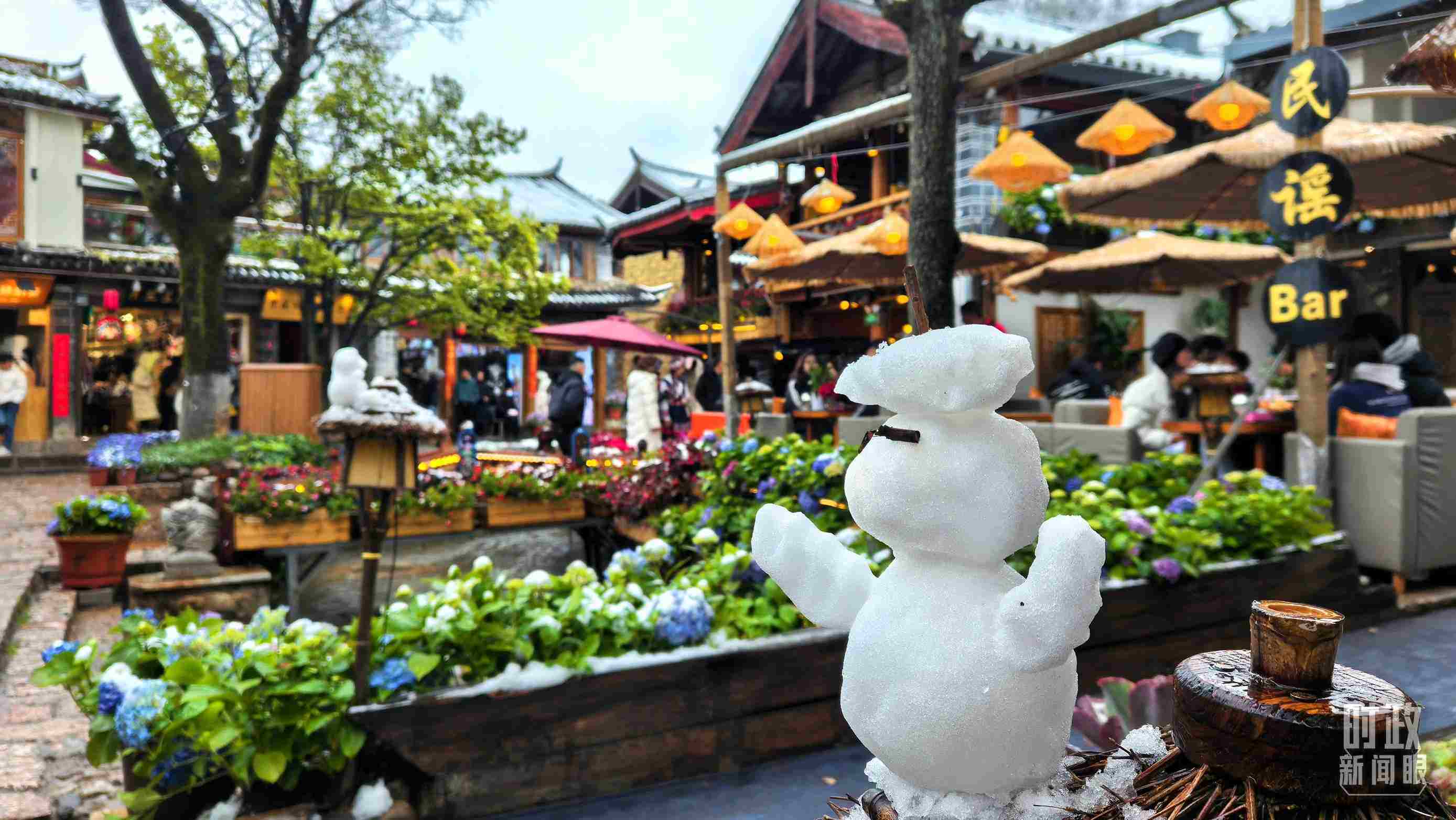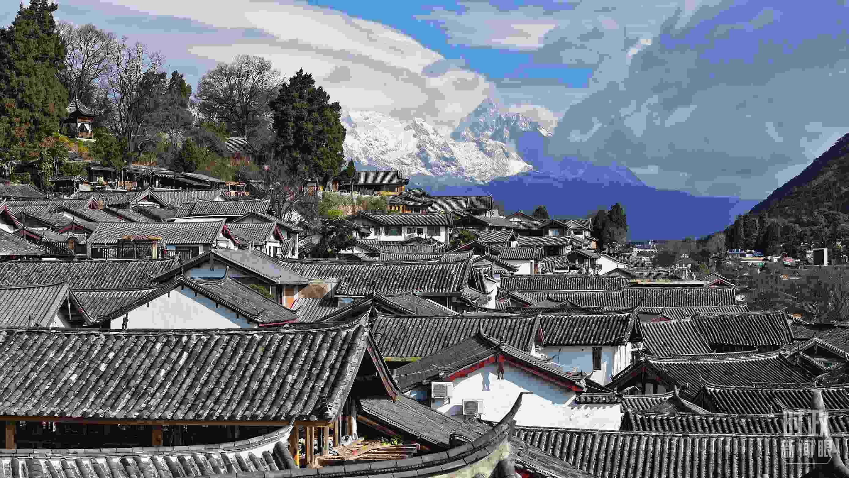 △一場瑞雪后的麗江古城。(總臺央視記者程鋮拍攝)