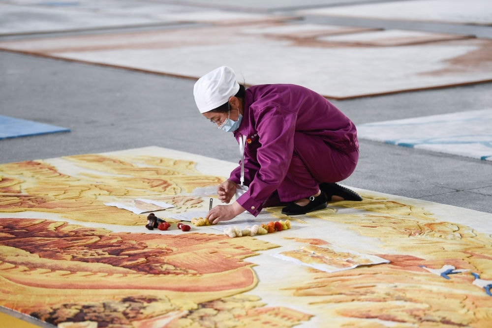 2019年,經(jīng)人介紹,張淑菊到圣源地毯工作。剛來的時候,她心里沒底:“以前干的凈是些粗活,咋練這‘繡花’功夫?”但經(jīng)過公司的技能培訓(xùn),她很快熟悉了這項工作,一干就是6年多。如今,她每月工資有5000多元。“買房了,女兒也上大學(xué)了?!睆埵缇照f,這些都是來這里工作后的變化,“等交房了,我要在客廳擺一張自己制作的藏毯”。