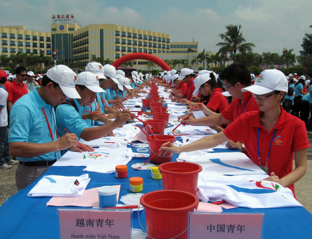 2010年8月27日,中越青年在廣西北海市海濱公園參加"用友誼共繪美好未來"中越千名青年大型彩繪活動。