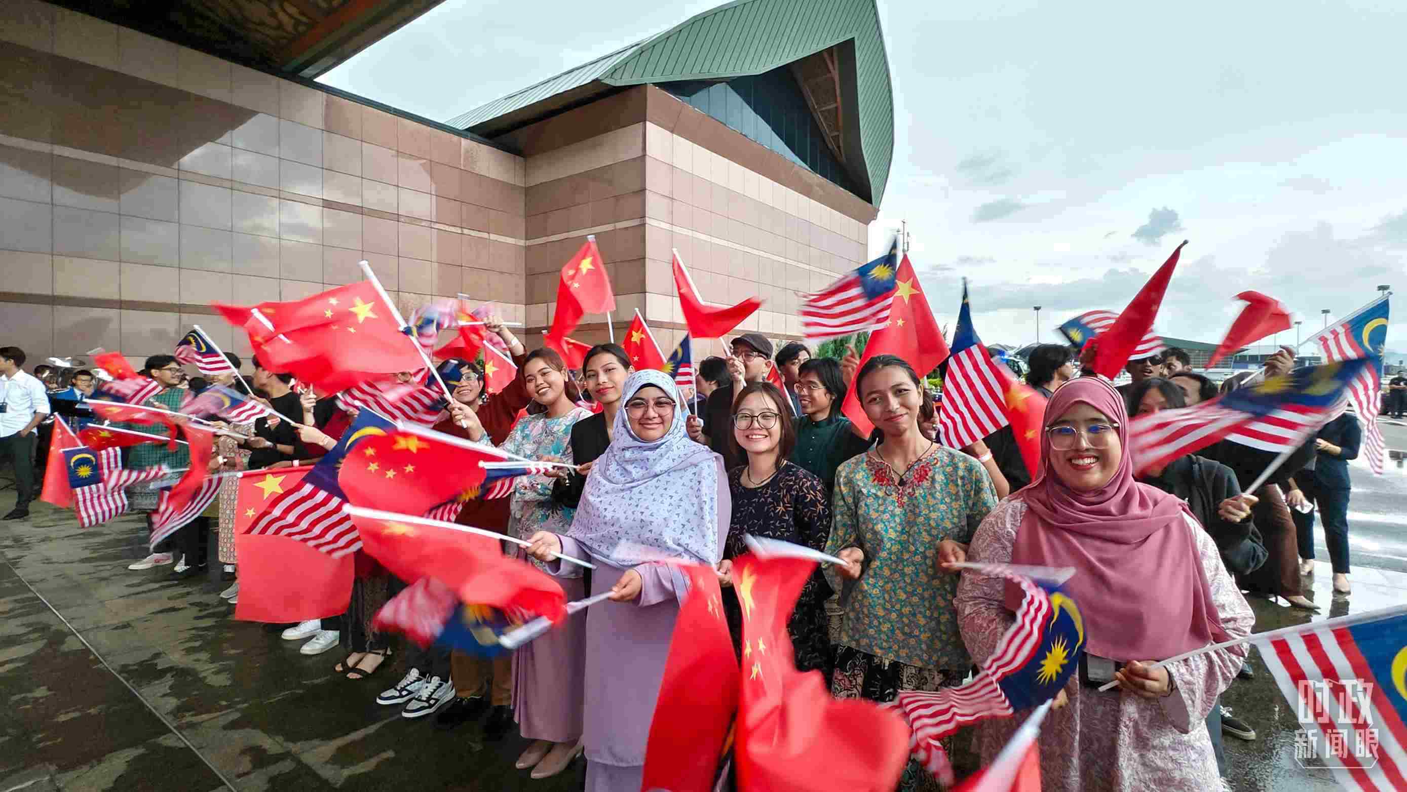 △在機(jī)場(chǎng)迎接習(xí)近平主席的馬來(lái)西亞當(dāng)?shù)孛癖姟#偱_(tái)央視記者韓銳拍攝)