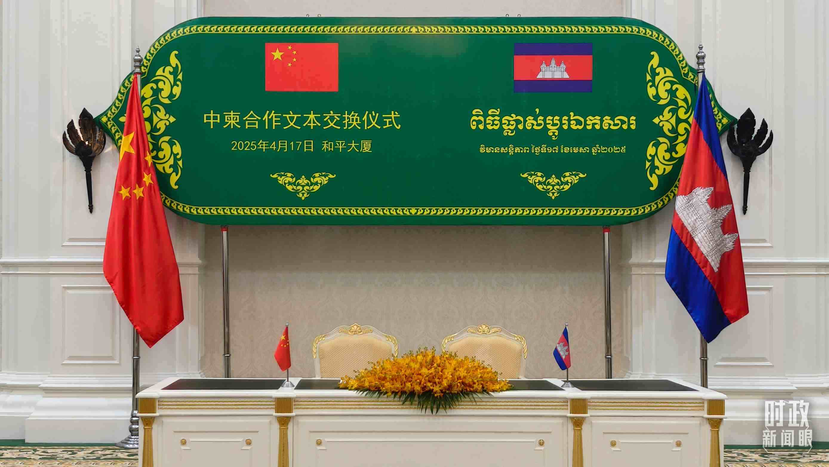 △中柬合作文本交換儀式現(xiàn)場(chǎng)。(總臺(tái)央視記者楊立峰拍攝)