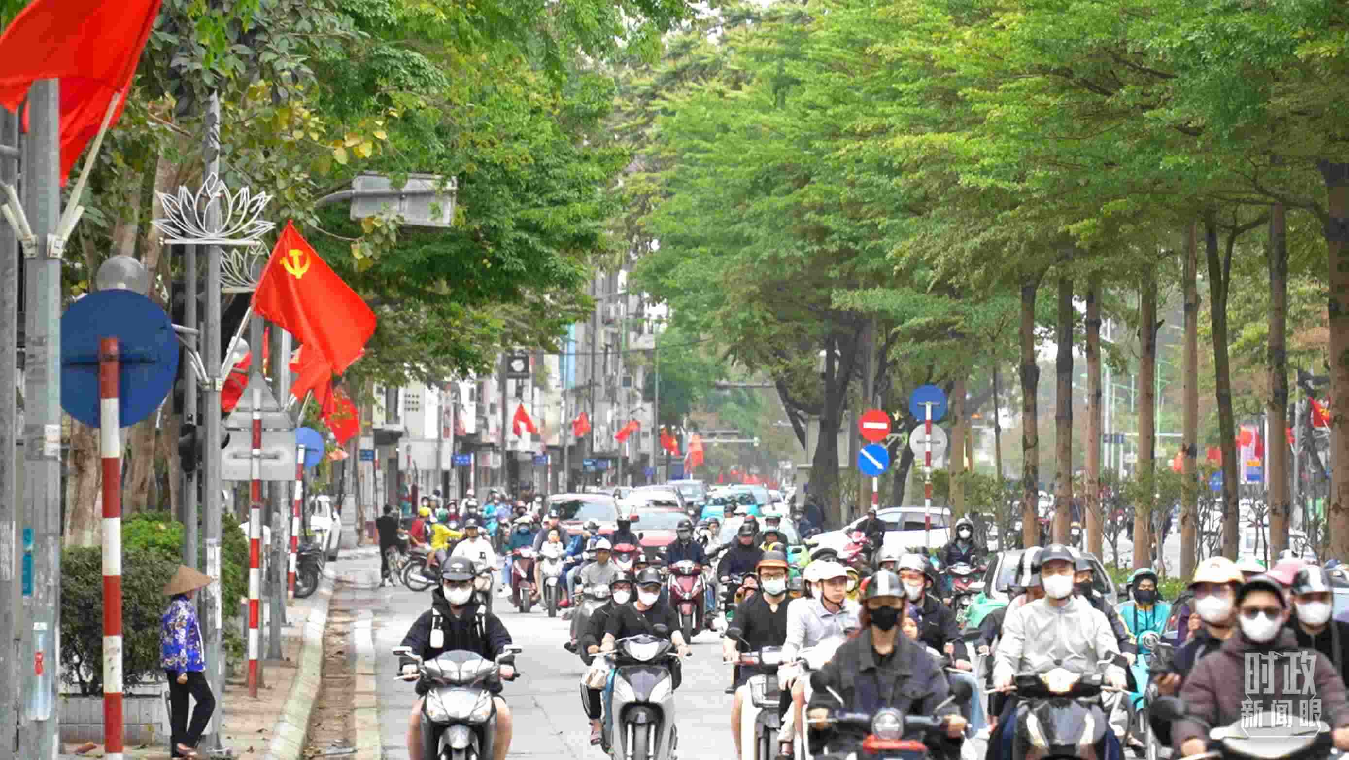 △中越兩黨兩國(guó)旗幟飄揚(yáng)在河內(nèi)街頭。(總臺(tái)央視記者盧心雨拍攝)