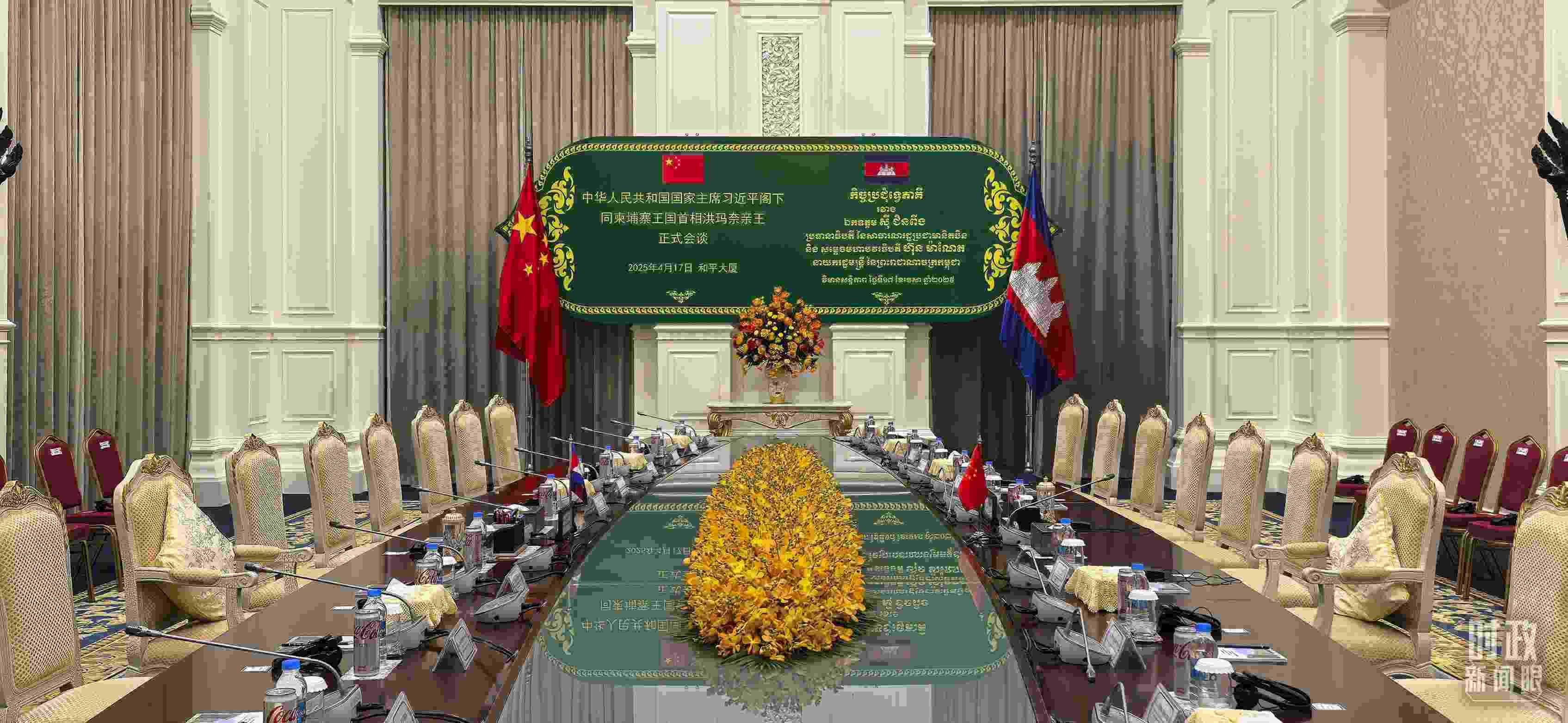△金邊和平大廈,習主席同洪森、洪瑪奈的會見會談在這里舉行。(總臺央視記者范一鳴拍攝)