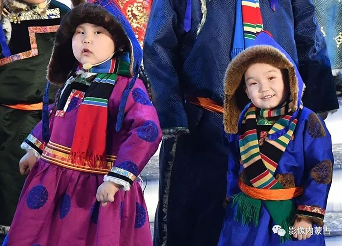 現(xiàn)場,身著盛裝的蒙古族小朋友特別可愛呦!