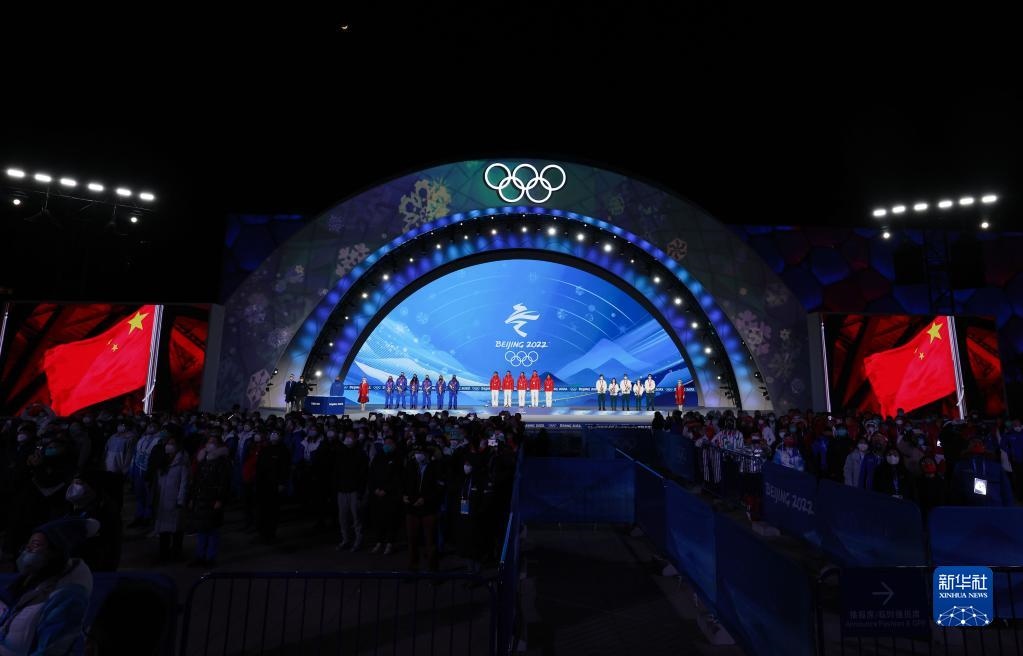 當(dāng)日,北京2022年冬奧會短道速滑混合團(tuán)體接力獎牌頒發(fā)儀式在北京賽區(qū)頒獎廣場舉行。