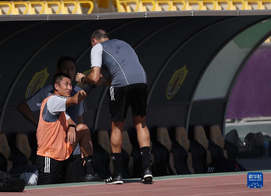 當(dāng)日,入選2022年卡塔爾世界杯裁判員名單的中國(guó)裁判馬寧、曹奕與施翔在卡塔爾體育俱樂(lè)部球場(chǎng)進(jìn)行訓(xùn)練。