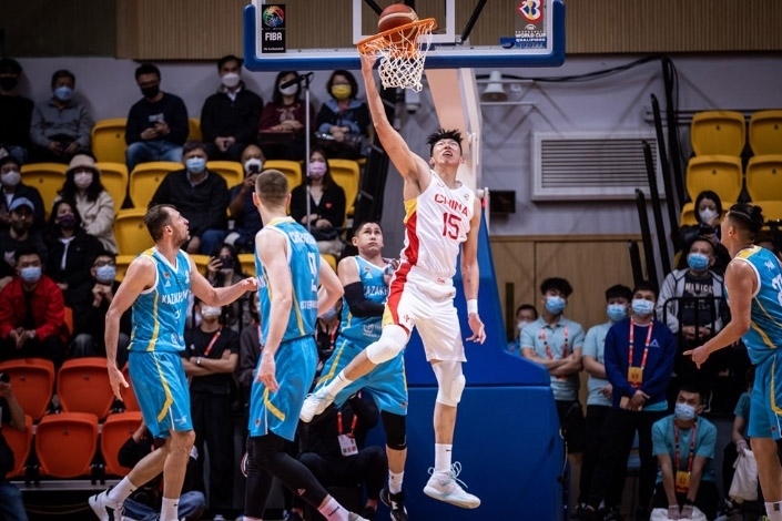 周琦籃下暴扣。圖片來(lái)源:FIBA國(guó)際籃聯(lián)