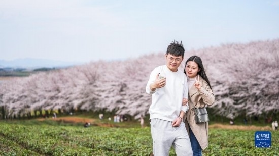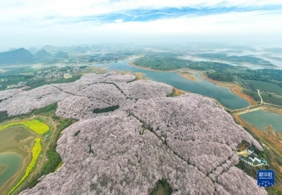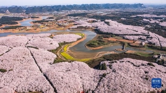 近日,貴州省貴安新區(qū)櫻花園內的2.4萬畝櫻花競相綻放,如雪似霞,吸引游客前來賞花觀光。