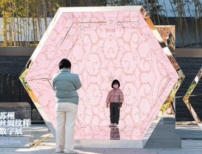 “云中·紋里——蘇州絲綢紋樣數(shù)字展”現(xiàn)場。 蘇州絲綢博物館供圖
