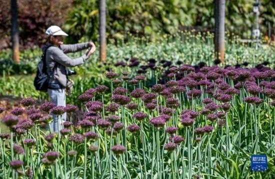 近日,昆明植物園中烏全球蔥園(昆明中心)內(nèi)的近十個(gè)品種、6000余株觀賞蔥屬植物逐漸迎來盛花期,吸引游客前來觀光。據(jù)了解,蔥屬植物具有重要的經(jīng)濟(jì)利用價(jià)值,許多種類被人類作為食用、藥用和觀賞植物進(jìn)行了長期的栽培利用。