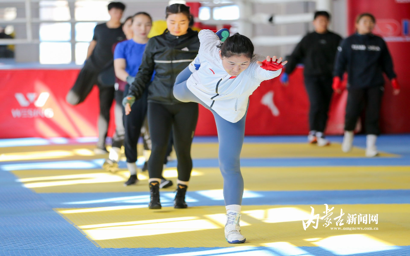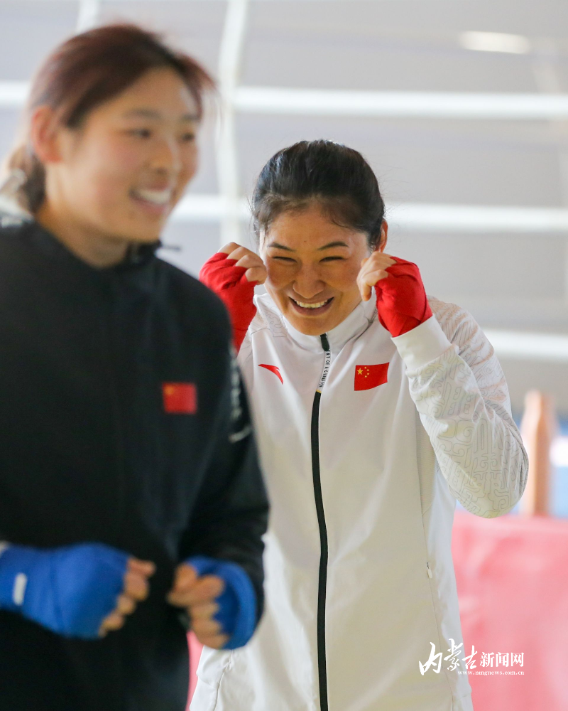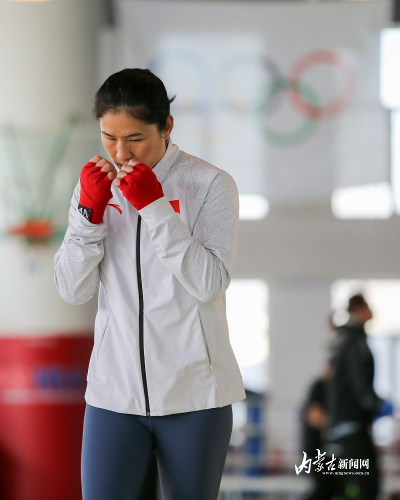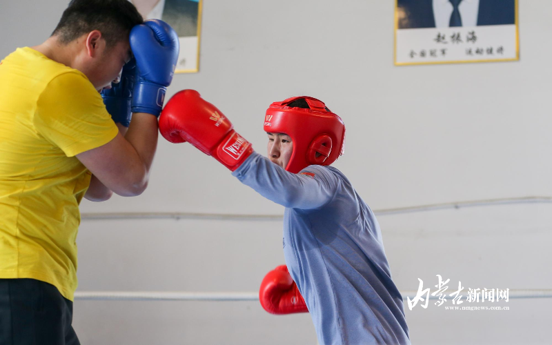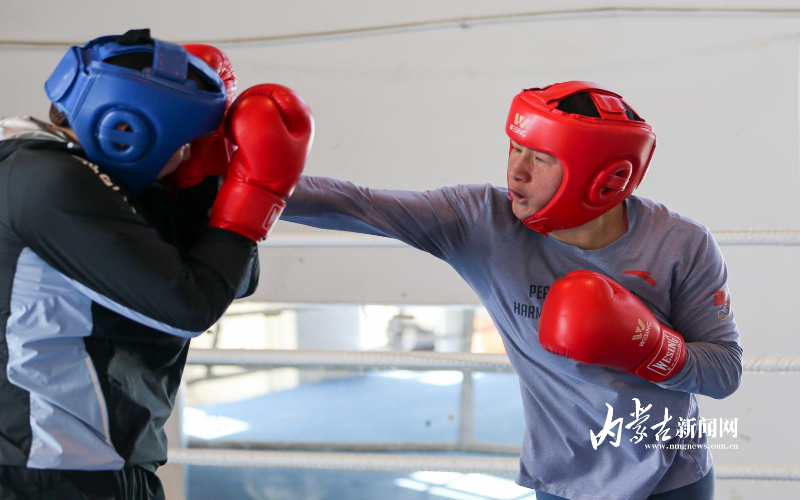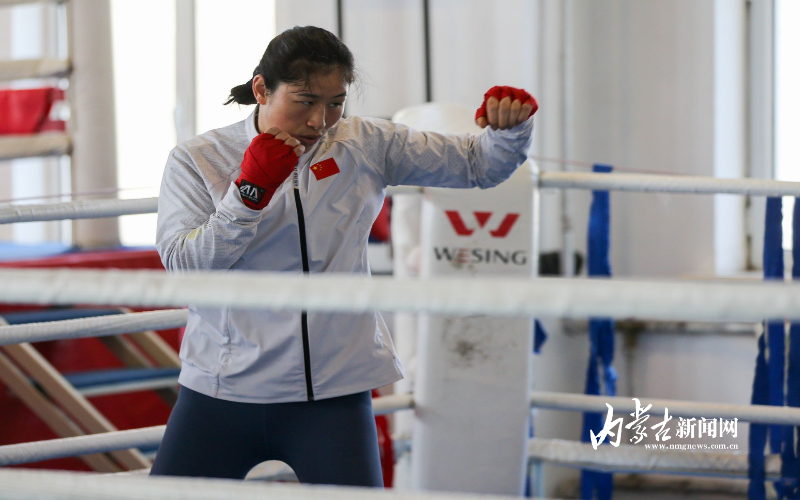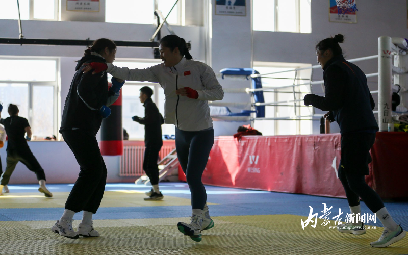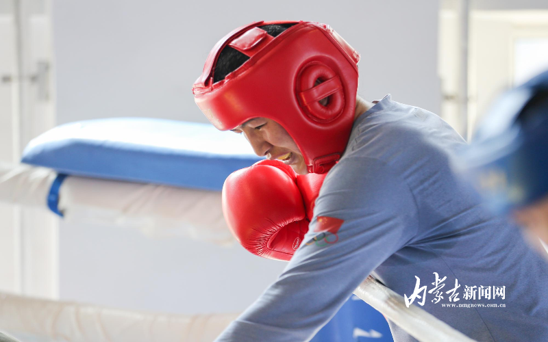 當(dāng)日,記者在拳擊館內(nèi)看到,在訓(xùn)練中李倩腳步輕盈,汗珠在額頭滑落。她戴上拳套,走向沙袋,一記記重拳砸出,發(fā)出沉悶的“砰”聲。內(nèi)蒙古女子拳擊隊(duì)的數(shù)十名拳手正在同時(shí)訓(xùn)練,沙袋晃動(dòng),呼吸急促,空氣中彌漫著汗水與堅(jiān)持的味道。“防守,腳下要穩(wěn)!”內(nèi)蒙古拳擊隊(duì)總教練哈達(dá)巴特爾的聲音在空間回蕩。李倩的訓(xùn)練格外嚴(yán)格。除了常規(guī)力量訓(xùn)練、反應(yīng)訓(xùn)練和體能循環(huán),她還要進(jìn)行一對一的與男拳手的實(shí)戰(zhàn)模擬,幾次交鋒下來,氣息都愈發(fā)急促。但李倩沒有退縮,反而越打越穩(wěn),腳步靈活,出拳干凈利落。