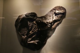 這兒,有中國最大的晚白堊紀(jì)恐龍化石產(chǎn)地——烏拉特后旗巴音滿都呼恐龍化石帶。圖為第一只以“巴彥淖爾”命名的恐龍,生存于白堊紀(jì)早期,保存骨骼化石300多塊,化石完整度達(dá)到97%以上,堪稱“完美”,被稱為“完美巴彥淖爾龍”。