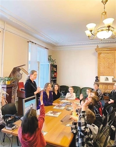 今年4月,在俄羅斯圣彼得堡兒童圖書中心,一群俄羅斯小朋友圍坐在一起目不轉(zhuǎn)睛地盯著電腦屏幕。畫面中,中國作家黑鶴身在大草原,被駿馬、牧羊犬環(huán)繞,將《鄂溫克的駝鹿》的創(chuàng)作故事與生活經(jīng)歷娓娓道來。天真活潑的孩子們紛紛舉手,提出了一個個充滿童趣的問題:筆名黑鶴是什么意思?鄂溫克人的帳篷什么樣?蚊煙是干什么用的?駝鹿能長多高?
