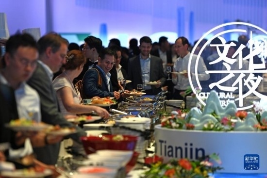 6月27日,與會嘉賓在第十四屆夏季達沃斯論壇文化之夜現場了解天津特色美食。