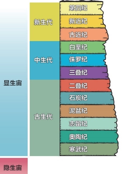 年代地層表——隱生宙、顯生宙示意圖。張芳曼繪