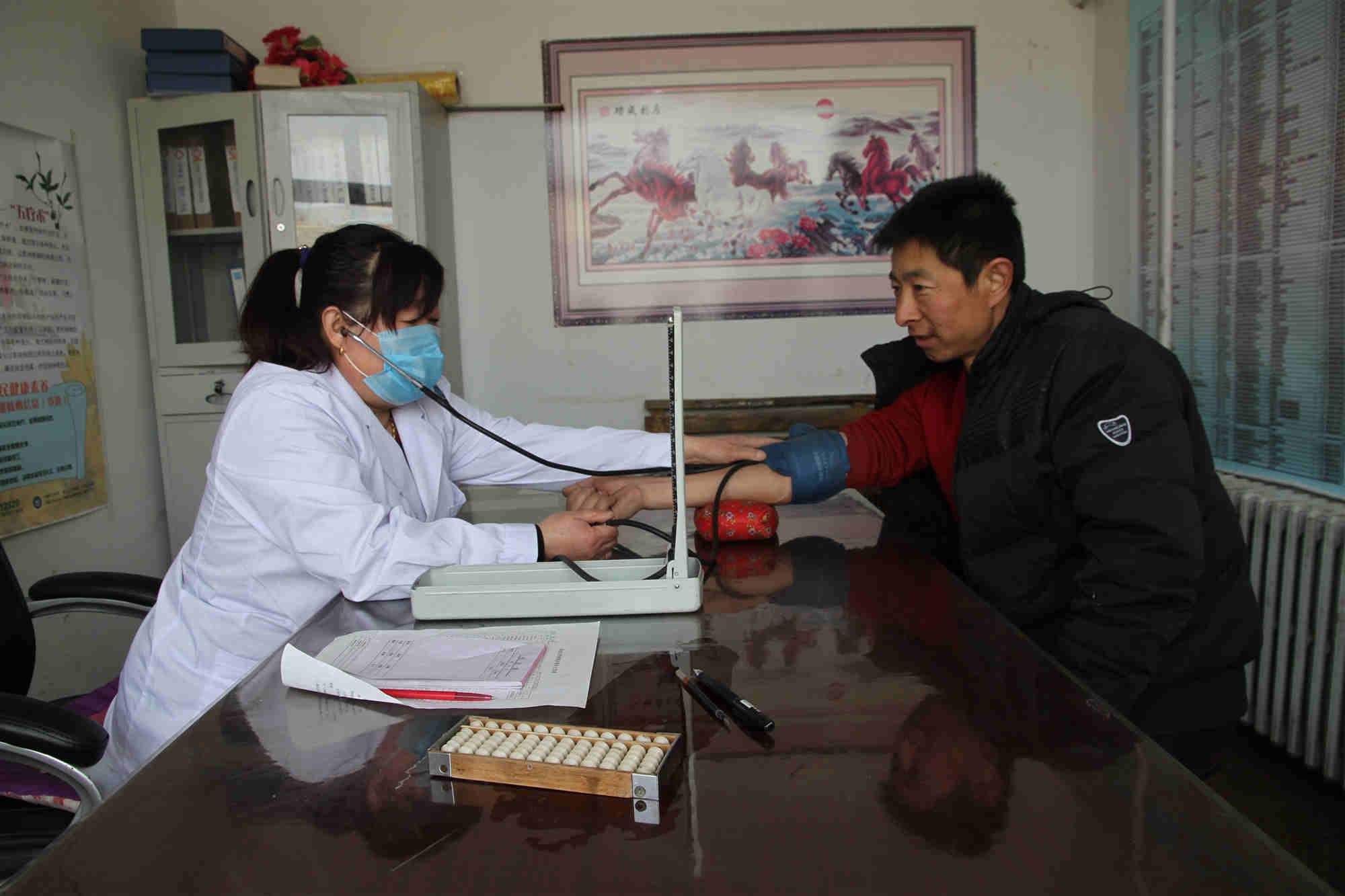 赤峰市喀喇沁旗南臺子鄉(xiāng)五家村衛(wèi)生室醫(yī)生為貧困群眾進行免費健康體檢。 孫偉 攝