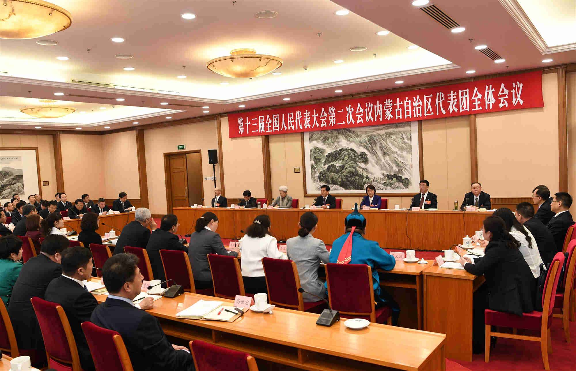 十三屆全國人大二次會議內(nèi)蒙古代表團召開全團會議