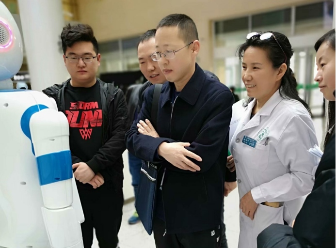 趙俊葉與患者一起體驗導診機器人預約