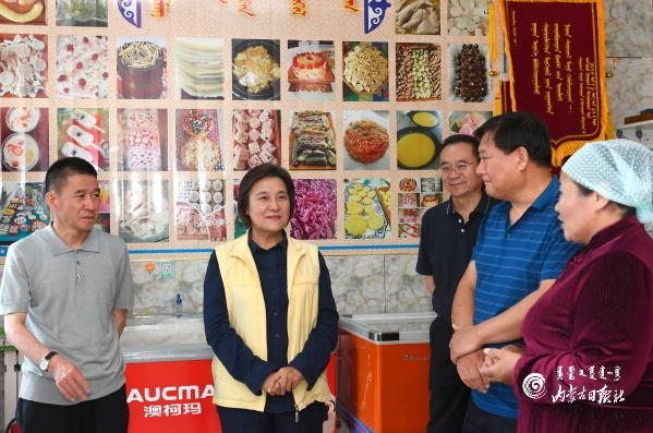 我區(qū)民族特色奶制品具有很大的發(fā)展?jié)摿ΑT谛掳蜖柣⒆笃炷热仕_其爾巴爾虎奶食品加工基地,布小林考察產(chǎn)品種類、工藝流程、安全檢測(cè)、包裝銷售等方面的情況。得知基地被認(rèn)定為奶制品技藝培訓(xùn)教室和扶貧車間、主要安置建檔立卡貧困戶就業(yè)時(shí),她對(duì)此給予肯定,鼓勵(lì)基地進(jìn)一步發(fā)揮引領(lǐng)帶動(dòng)作用,積極探索特色化、標(biāo)準(zhǔn)化、品牌化發(fā)展路子,幫助更多貧困群眾增收致富。