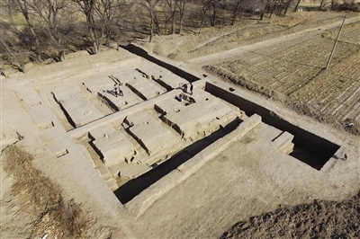 11月10日,航拍呼和浩特市玉泉區(qū)沙梁子村的西漢中晚期疑似大型糧倉(cāng)建筑基址發(fā)掘現(xiàn)場(chǎng)。近日,內(nèi)蒙古文物考古研究所與中山大學(xué)組成的聯(lián)合考古隊(duì)在沙梁子村揭露一處大型夯土高臺(tái)建筑基址,根據(jù)出土的磚瓦材料及夯臺(tái)建筑的形制推測(cè),可能是一座西漢時(shí)期的大型倉(cāng)儲(chǔ)建筑,距今約2000多年。這是我國(guó)迄今發(fā)現(xiàn)規(guī)模最大的漢代單體夯土高臺(tái)建筑。(內(nèi)蒙古日?qǐng)?bào)記者 孟和朝魯 實(shí)習(xí)生 郭明午 攝)